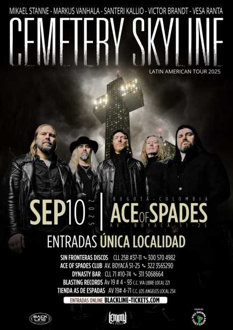 en ACE OF SPADES CLUBCEMETERY SKYLINE llega por primera vez a Bogotá con un show exclusivo en Ace of Spades Club.El próximo 10 de septiembre, prepárate para una noche cargada de intensidad, oscuridad y elegancia gótica en cada nota.Una experiencia única con una de las propuestas más frescas y contundentes del metal alternativo actual.Boletería: $180.000 + servicio