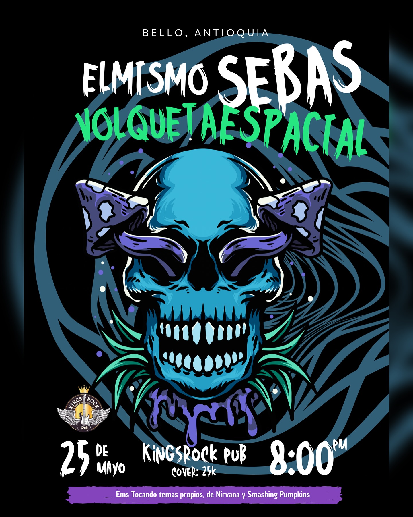 en Kings Rock PubEl Mismo Sebas, de Tres de Corazón, anuncia esta fecha para todo el parche rockero del Norte (Bello) Junto a la banda Volqueta Espacial, un parche en el que queremos compartir nuestros proyectos y propuestas musicales.EMS: tocando temas propios y tributo a Nirvana y Smashing PumpkinsVE : con su contundente Sonido y después de haber actuado exitosamente en el festival Altavoz internacional viene a presentarnos algunas canciones de su próximo disco, el cual grabaron en Buenos Aires, Argentina.