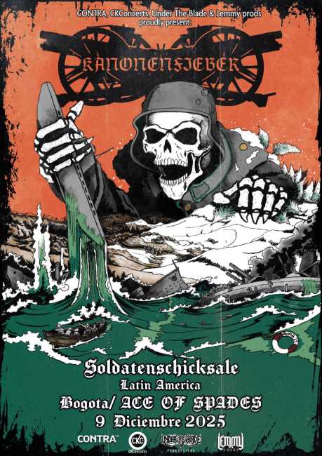 en Ace of Spades ClubEl 9 de diciembre, la oscuridad y la historia se fusionan en el escenario de Bogotá con KANONENFIEBER, la banda alemana de death metal melódico blackened que ha estremecido al mundo con su cruda narrativa sobre la Primera Guerra Mundial.🎸 Liderada por Noise, Kanonenfieber nació de los relatos de su bisabuelo en el frente de batalla, transformando memorias en un sonido demoledor que no glorifica la guerra, sino que la expone en toda su crudeza. La cita es el próximo 9 de diciembre en el Ace of Spades de la ciudad de Bogotá.Boletería: $180.000 + servicio