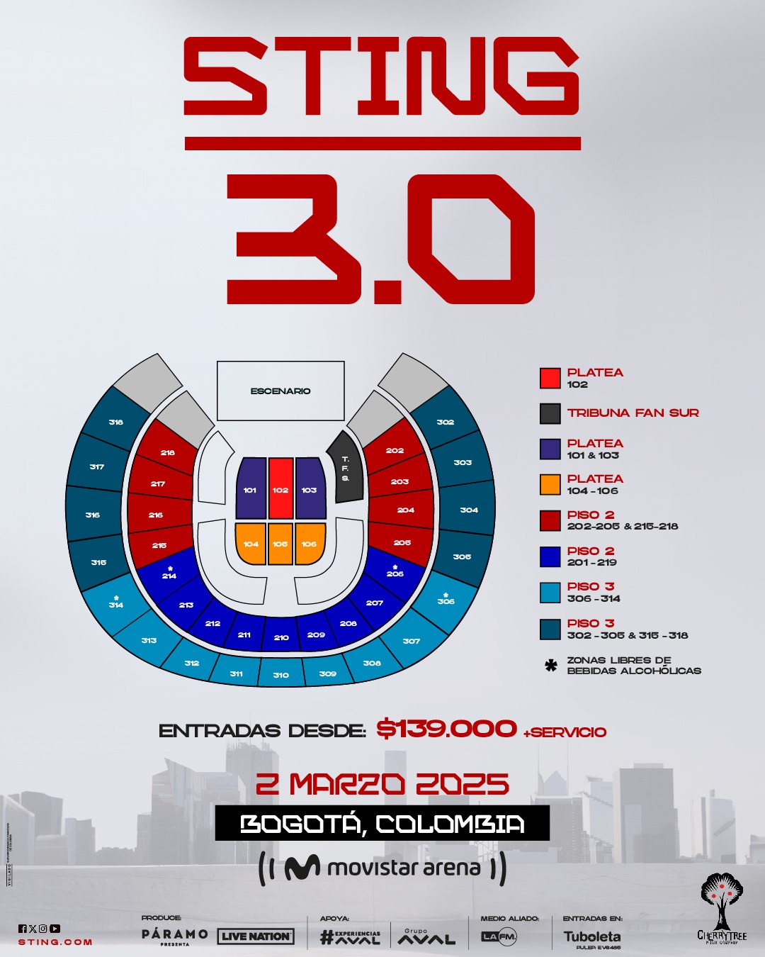 La gira "STING 3.0" celebra su vasta trayectoria, presentando un repertorio que incluirá tanto clásicos de The Police como de su exitosa carrera como solista. A través de este espectáculo, Sting buscará conectar de nuevo con su fiel audiencia colombiana, que ha seguido cada etapa de su evolución artística.