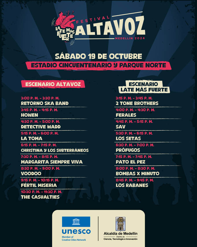 La jornada de apertura promete una mezcla de sonidos que van desde el rap y el reggae hasta el rock alternativo. Maldita Vecindad traerá su energía pachuca desde México para hacer bailar a Medellín, mientras que 1280 Almas se encargará de prender el pogo con clásicos como Marinero y Soledad Criminal.